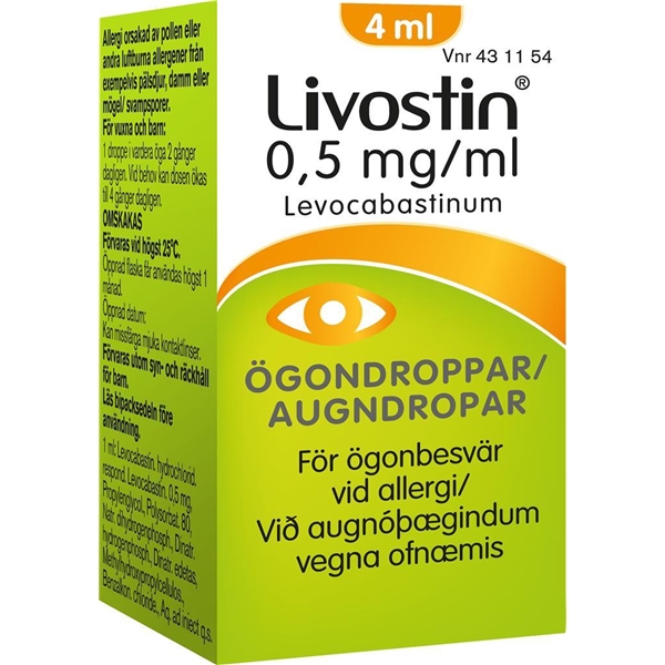 Obs! 18-årsgräns på receptfria läkemedel!LIVOSTIN® (Levokabastin) ögondroppar 0,5 mg/ml för ögonbesvär vid allergi