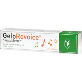 GeloRevoice® är en receptfri sugtablett som snabbt lindrar problem med heshet och torra slemhinnor. GeloRevoice® skyddar det irriterade området och hjälper både röst och slemhinnor att återhämta sig.