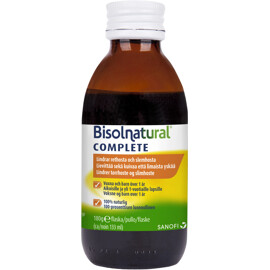 Hostsirap för lindring av både rethosta och slemhosta. Bisolnatural Complete är en medicinteknisk produkt som hjälper till att göra slemmet mer tunnflytande, vilket underlättar upphostning samtidigt som den skapar en skyddande hinna som förhindrar att externa irriterande ämnen kommer i kontakt med slemhinnan. Tillverkad av 100% naturliga ingredienser, innehåller ingen alkohol, färgämnen eller konserveringsmedel. Kan användas av vuxna och barn från 1 år och uppåt.
