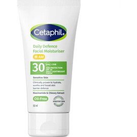 Cetaphil Daily Defence är en kombinerad dagcreme och solskydd framtagen för daglig återfuktning och skydd av ansiktet. Formulan innehåller ett bredspektrumfilter med SPF50+ som skyddar mot både UVA- och UVB-strålar. Trots det höga solskyddet har cremen en lätt konsistens som snabbt går in i huden utan att lämna vita rester eller en fet känsla.