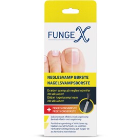 FungeX Nagelsvampsborste är en medicinteknisk produkt utvecklad för effektiv behandling av nagelsvamp. Den används enkelt i vardagen och är särskilt framtagen för att nå ner i nagelns yta där svampen sitter.