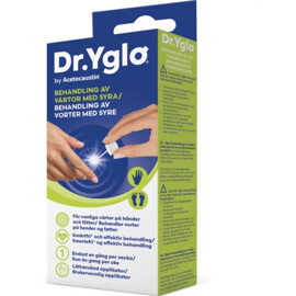 Dr Yglo Acetocaustin är en behandling för envisa och vanliga vårtor på händer och fötter. Produkten är baserad på monoklorättiksyra, en kraftfull substans som endast behöver appliceras en gång i veckan. Den medföljande spateln gör det enkelt att applicera en liten mängd vätska med hög precision direkt på vårtan. Behandlingen verkar genom att gradvis bryta ner den infekterade vävnaden tills vårtan försvinner.