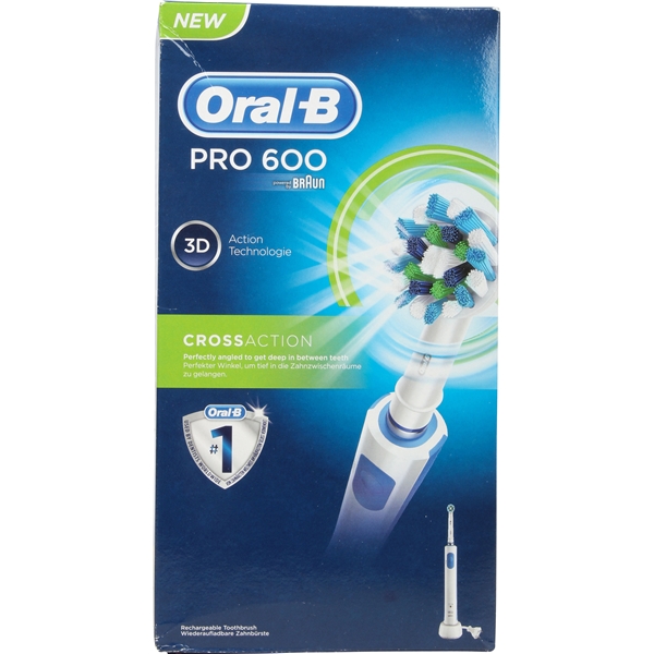 Oral B PRO600 är en munvårdsinnovation på ny nivå från Oral-B. Med ett 3D-rörligt rengöringssystem som genom att oscillera, rotera och pulsera tar bort upp till 100% mer plack än en manuell tandborste.Pro 6000 CrossAction borsthuvud har perfekt vinklade strån och är designad för att effektivt lyfta och svepa bort mer plack än en manuell tandborste.Oral-B Pro 6000 har flera olika rengöringslägen med trycksensor som varnar vid för hårt tryck, tandköttsvård och djuprengöring. En SmartGuide visar borsttid och när det är dags att byta borstområde i munnen.Borsten ger en kort signal var 30:e sekund och en lång signal efter 2 minuters borstning.
