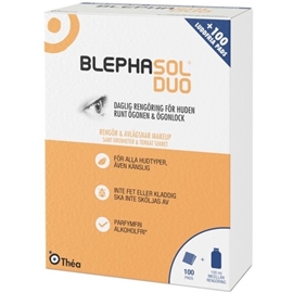 BLEPHASOL DUO innehåller inte alkohol eller parfym, svider inte och lämnar huden ren och återfuktad.