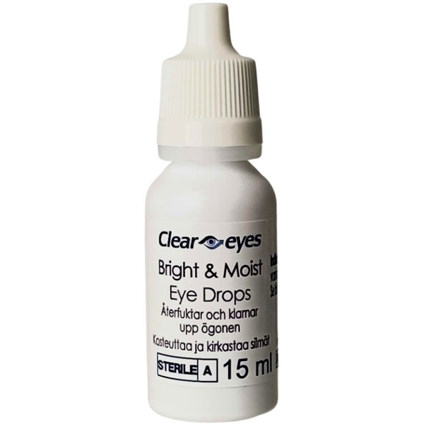 Cleareyes Bright & Moist är en steril ögondroppslösning som används för att återfukta och smörja torra ögon samt tillfälligt minska ögonrodnad orsakad av yttre faktorer som miljöpåverkan. Dropparna innehåller hyaluronsyra som bidrar till långvarig återfuktning och Euphrasia (ögontröst) som traditionellt används för att lindra ögonirritation.