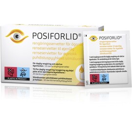 POSIFORLID® rengöringsservetter för ögonlock är sterila engångsvåtservetter som är väl lämpade för daglig rengöring och vård av känsliga ögonlock. Används för rengöring vid irriterade ögonlock och ögonlockskanter för att ta bort pollen vid allergier, klibbiga ögon, före ögonkirurgi, vid plackliknande skräp, flagor och skorpor som fastnar på/mellan ögonfransarna och ögonlockskanterna.