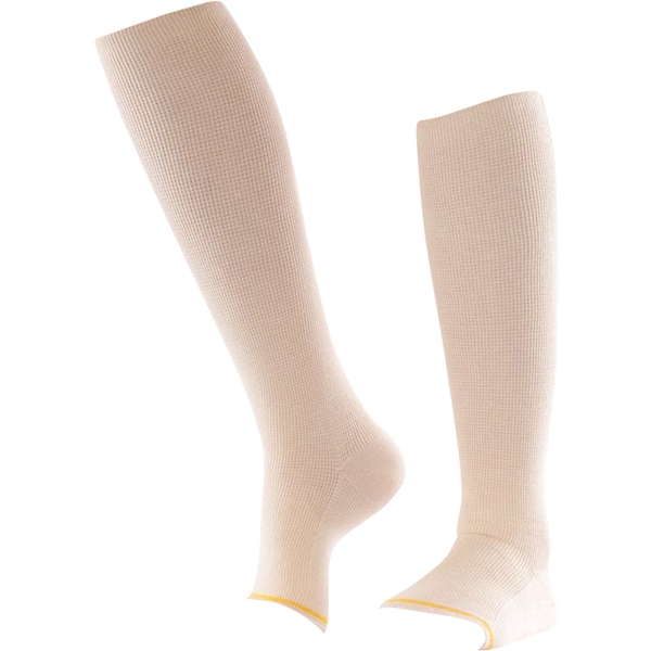 Medicinsk stödstrumpa som motverkar svullnad, trötthet och åderbrock. Strumpan har öppen tå vilket ger en ökad passform och underlättar påtagning, glidsocka ingår. Strumpan är extra tålig för sol och salvor.Strumpan är av kompressionsklass 1 (18mmHg) och har en avtagande kompression från vaden och uppåt vilket ger en ökad blodcirkulation.Passar både för herr och dam.Välj rätt storlek:För att passformen skall bli perfekt finns det två mått du bör utgå ifrån, omkretsen runt ankeln där den är som smalast och omkretsen runt vaden där den är som bredast. Måtten skall tas direkt på morgonen innan benen/fötterna svullnat.Vik aldrig ner den övre strumpkanten, det ger en felaktig tryckfördelning och därmed ej avsedd effekt!