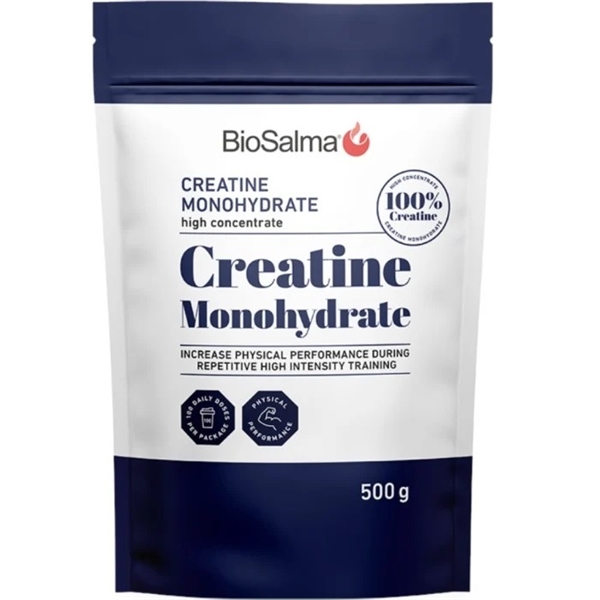 BioSalma® rent kreatin monohydrat används för att öka den fysiska prestationen vid upprepande kraftansträngningar i samband med kortvariga och högintensiv träning. Den gynnsamma effekten uppnås med ett dagligt intag av 3 g kreatin. Produkten innehåller inga tillsatser eller utfyllnadsämnen.