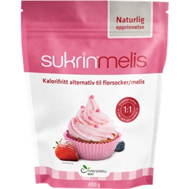 SukrinMelis är Sukrin som är finmalt och tillsatt en liten mängd steviolglykosider (från steviaplantan). Kombinationen av de två sötningsmedlen ger en rund och rik sötsmak och dämpar den kylande känslan som ren Sukrin kan ge. SukrinMelis är lika sött som vanligt socker/florsocker och används i samma mängd. Eftersom att SukrinMelis är finmalt löser det upp sig lättare än vanlig Sukrin.SukrinMelis kan användas i bakning på samma sätt som Sukrin. Eftersom att vanlig Sukrin bara har 70 % söthet i förhållande till socker kan du använda ca 40 % mindre mängd SukrinMelis om du ersätter Sukrin i ett recept. SukrinMelis har också lite större volym. 1 dl Sukrin väger 90 gram, medan 1 dl SukrinMelis väger ca 70 gram.När du använder SukrinMelis till att göra vanlig florsocker glasyr (med vatten/äggvita), kan det vara smart att blanda 50/50 med vanligt florsocker för att få riktig konsistens.