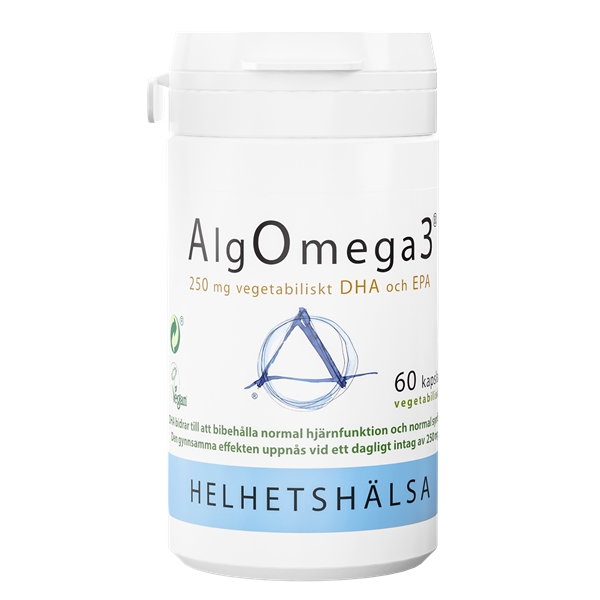 Ett dagligt intag av 250 mg DHA/EPA bidrar till normal hjärtfunktion. En kapsel AlgOmega3 ger 250 mg DHA/EPA.