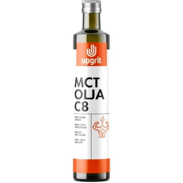 MCT-olja av högsta kvalitet från100% kokosolja består av den mest eftertraktade medellånga mättade fettsyran C8. C8 MCT även kallad kaprylsyra tas snabbt upp av kroppen jämfört med andra fetter och omvandlas till energigivande ketoner.