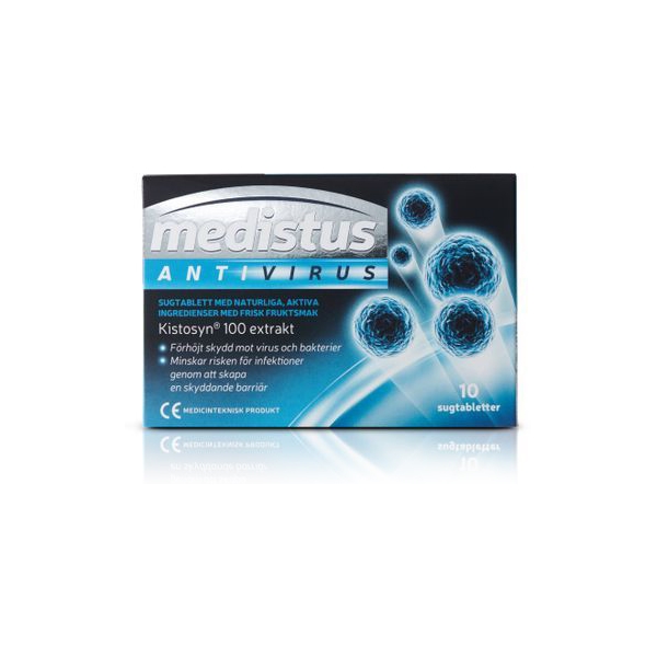 Medistus Antivirus är en medicinteknisk produkt som innehåller en polyfenolrik kombination av örtextrakt ochKistosyn®200-extraktsom bildar en mekanisk barriär och förhindrar virus och bakterier att fästa i munnens slemhinnor. Medistus lindrar dessutom symptom som hosta och torrhosta.