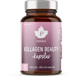 Pureness Kollagen Beauty-kapsel är en kombination av världens mest studerade kollagenpeptid Verisol®, C-vitamin, Trippel Zink™ samt biotin i behändig kapselform.Kollagen, c-vitamin, zink och biotin är bland annat viktigt för uppbyggnad av hud, naglar och hår. C-vitamin och zink är dessutom antioxidanta.Kapseln är lätt att svälja tillsammans med lite vätska.