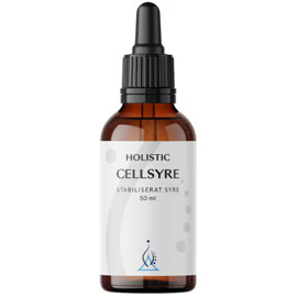 Holistic Cellsyre innehåller stabiliserade syreföreningar – det vill säga syre i en stabil form löst i destillerat vatten tillsammans med natriumföreningar. Resultatet är en nästan helt lukt- och smakfri lösning.Cellsyre har ett pH-värde nära neutralt (ca pH 6,5–8,5)och en mycket låg salthalt på under 5 ppm, vilket gör den skonsam att använda. Lösningen passerar genom mag-tarmkanalen där dess innehåll kan tas upp av kroppen.Eftersom syre är en förutsättning för kroppens cellfunktioner – som energiproduktion och avgiftningsprocesser – används Holistic Cellsyre av många som ett stöd i perioder av ökad belastning.