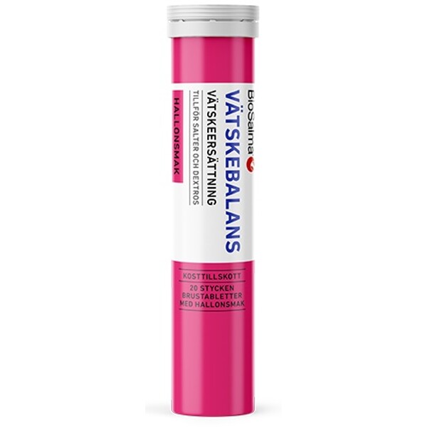 BioSalma® Vätskebalans är en kolhydrat-elektrolytlösning med smak av hallon som tillför kroppen vätska och salter.Återställ vätskebalansen snabbt och enkelt med vår välsmakande vätskeersättning med hallonsmak i brustablettform. Perfekt vid träning, varma dagar, resor eller när kroppen behöver extra påfyllning efter vätskeförlust.
