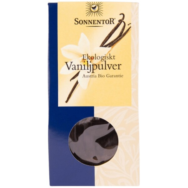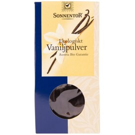 Sonnentors ekologiska vaniljpulver tillverkas av hela vaniljstänger och har en fyllig, djup smak. Det räcker med en liten mängd för att ge bakverk och maträtter en härligt rik vaniljton.