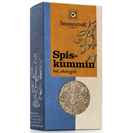 Sonnentors ekologiska och torkade spiskummin passat bra i indiska och mexikanska rätter. Ger även god smak till bröd.