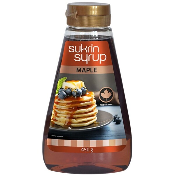 Sukrin Sirup Maple är en glutenfri lönnsirap med låg sockerhalt, innehållandes endast 2% sockerarter. Den finns i tre olika smaker – Gold, Maple och Caramel – och kan användas både i bakning och matlagning eller som topping. Sirapen passar dig som söker ett alternativ med färre kalorier utan att behöva ge avkall på smaken.
