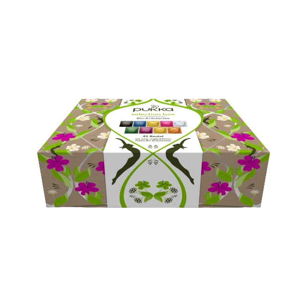 Pukka Örtte Selection Box Relax är ett urval av fem avkopplande och goda ekologiska örtteblandningar. Samtliga är etiskt tillverkade och kommer i en återvinningsbar ask. En harmonisk gåva till dig eller någon du tycker om. 45-pack.