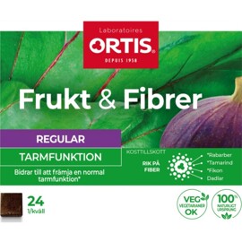 Frukt & Fibrer är en välsmakande och 100% naturlig tuggtärning som innehåller extrakt av tamarind, fikon och rabarber som bidrar till en normal tarmfunktion. Varje tärning är separat förpackad och Frukt & Fibrer är därför enkel att ta, även på resan.Observera att Frukt & Fibrer också finns som tabletter.