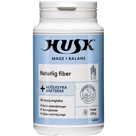 Husk med psylliumfibrer, mjölksyrabakterier och inulin. Bidrar till normal matsmältning, vid trög eller lös mage. Husk innehåller naturliga fibrer från psyllium som hjälper till att bibehålla normal matsmältning, till exempel vid trög eller lös mage. Husk erbjuds i pulver, kapslar och portionspåsar och har en neutral smak för lätt användning i kalla drycker och rätter (vatten, juice, yoghurt etc).