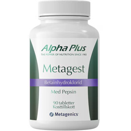 Metagest består av en blandning av betainhydroklorid och pepsin. Betainhydroklorid har lågt pH. Pepsin är ett enzym med molekylmassan 34,6 kDa, vilket är aktivt i sur miljö (pH-optimum 1,5–2,0).