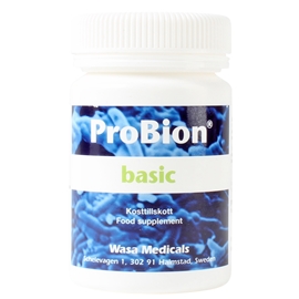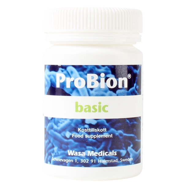 För den långsamma eller känsliga magen. Tabletten är utformad på ett sätt som skyddar laktobakterierna vid passagen genom mage/tarm så att de är fullt verksamma där de behövs. Tabletten upplöses långsamt och fördelar bakterierna inom ett stort område. De frystorkade bakteriekulturerna exponeras successivt. Detta är en fördel jämfört med kapslar och pulver, där bakterierna ligger oskyddade och lätt förstörs. Probion Basic innehåller 4 miljarder mjölksyrabakterier/tablett. ProBion tillverkas av Wasa Medicals under GMP standard.ProBion® är fri från mjölk inklusive mjölksocker samt fri från soja och fri från GMO (= genetiskt modifierade organismer)-producerade råvaror som ex soja samt är fri från övriga allergener.ProBion® har klinisk dokumentation på ingående bakteriestammar med säkerhetsklassade kulturer (EFSA=EU, FDA=USA, WHO=FN). Dessa är publicerade i internationella, vetenskapliga tidskrifter s.k. peer reviews. ProBion® är förpackat med torkmedel för bästa hållbarhet.