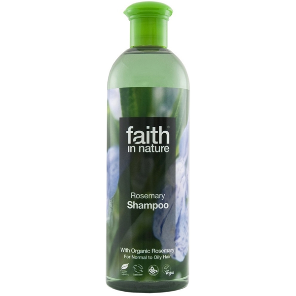 Alla Faith In Nature shampoon är fria från konserveringsmedel!Rosmarin shampoo innehåller rosmarin- olja som kan öka djupet i hårfärgen och få det att växa fortare. Rosmarin är sammandragande, och stimulerar därför håret och hårbotten och ökar aktiviteten. Det balanserar fett hår och är extra bra efter en period av sjukdom eller återhämtning efter sjukdom, särskilt om man fått mjäll under tiden. Passar normalt till fett hår.