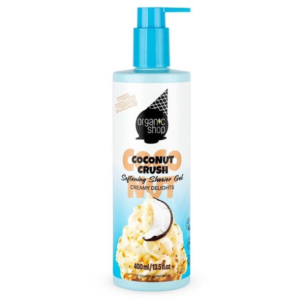Organic Shop Coconut Crush Softening Shower Gel ger dig en lugn, väldoftande och vårdande duschupplevelse. Den milda kokosdoften omsluter kroppen och skapar en känsla av komfort & ro. Den mjukgörande formulan hjälper till att återfukta huden, minska torrhet och lämnar den len, smidig och fräsch.