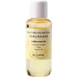 Macadamiaolja är en fet olja som utvinns ur macadamianötter. Härlig att använda både som hudvård och mat. Bra för torr och åldrande hud eftersom den hjälper till att bevara fuktigheten. Efter påbörjad användning kan hållbarheten förlängas vid förvaring mörkt och svalt.