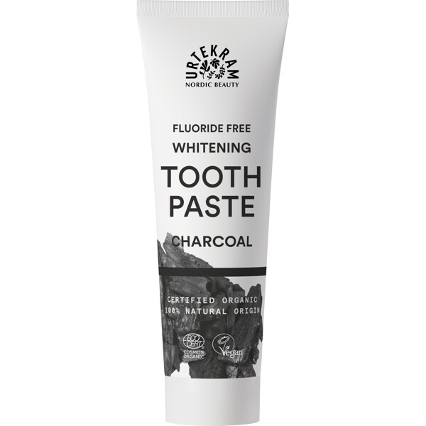 Urtekram Charcoal Toothpaste är en tandkräm utan flour med naturligt kol. Pilkol och zinklaktat hjälper till att reducera bildandet av plack och dålig andedräkt. Vi rekommenderar att du adderar en produkt med flour till din dagliga tandvårdsrutin. Certifierad Cosmos Organic, av Ecocert Greenlife, 100 % naturligt ursprung och vegansk.