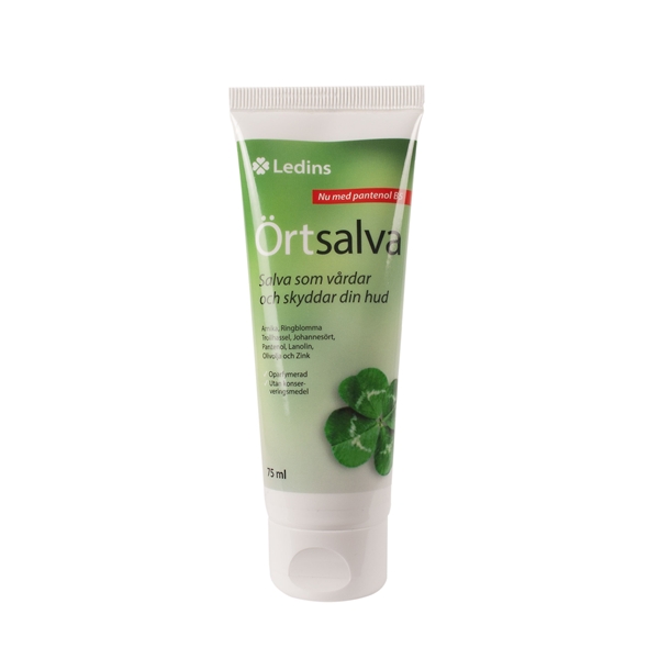 Ledins örtsalva är en salva som vårdar och skyddar din hud. Örtsalvan innehåller läkeörterna Arnika, Ringblomma, Trollhassel och Johannesört.