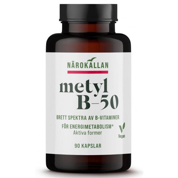 Närokällan B-50 innehåller folsyra i formen Quatrefolic som sägs vara bland den bättre på marknaden. B6 i den aktiva formen P5P samt B2 i den aktiva formen riboflavin-5-fosfat.
