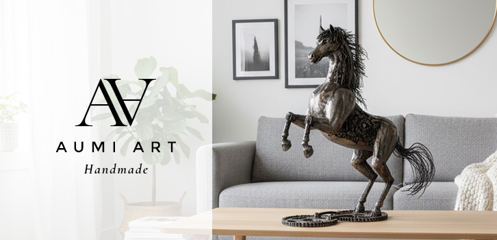 Horse 75 cm 1 st 1 Aumi Art Fantastisk hästskulptur i återvunnet metall.