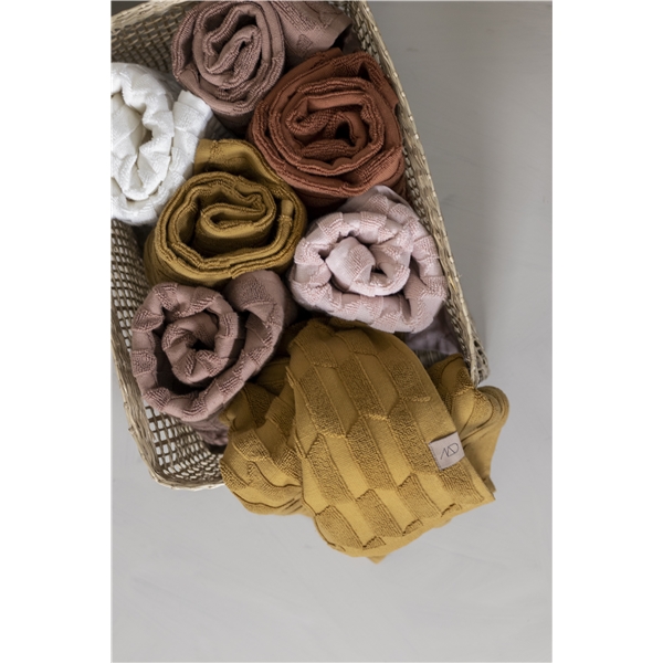 Minihanddukar från Mette Ditmer i 3-pack. Handdukarna från Geo-serien är praktiska och har många användningsområden. De är bland annat perfekta i badrummet för gäster att torka händerna med en egen torr och fräsch handduk utan bakterier på. Eller använd handduken som ansiktshandduk/tvättlapp för din morgon- eller kvällsrutin. Förutom att de är praktisk är de små handdukarna väldigt vackra att ha framme i en korg eller på en bricka, på diskbänken eller i badrummet. Det vackra tredimensionella mönstret är unikt och väldigt fint. Kombinera med de större handdukarna och badrumsmattan från samma serie.
