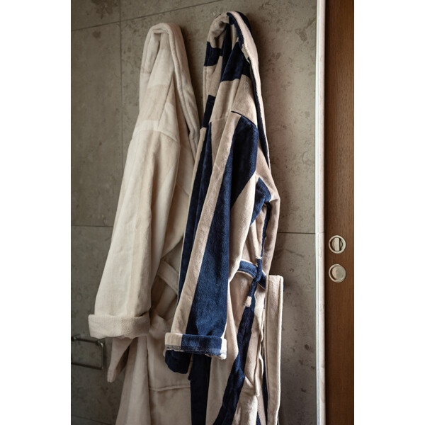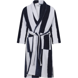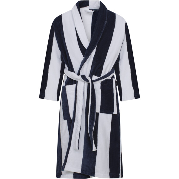 Lyxig morgonrock/badrock i unisex-modell med sofistikerade ränder, bred krage och välgjorda detaljer. Njut av mjuk och tjock bomullsvelour av högsta kvalitet.
