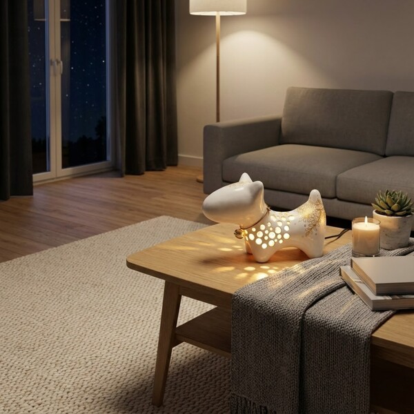 Ge ditt hem en unik charm med vår handgjorda Bull Terrier-hundlampa. Skickligt tillverkad i Thailand av återvunna papper, pryds denna förtjusande lampa av intrikata, handmålade thailändska motiv, inspirerade av traditionell Benjarongkonst, vilket tillför både belysning och karaktär till vilket rum som helst. Finns i flera färger. Storlek: Ungefär 10 x 22 x 16 cm. Material: Papier-maché av återvunnet papper, för en hållbar inredning. Handmålad med detaljerade thailändska mönster, vilket gör varje exemplar till ett unikt konstverk. Den bedårande Bull Terrier-formen introducerar ett lekfullt men ändå sofistikerat element, perfekt för vardagsrum, sovrum eller barnrum. Lätt att rengöra med en fuktig trasa.