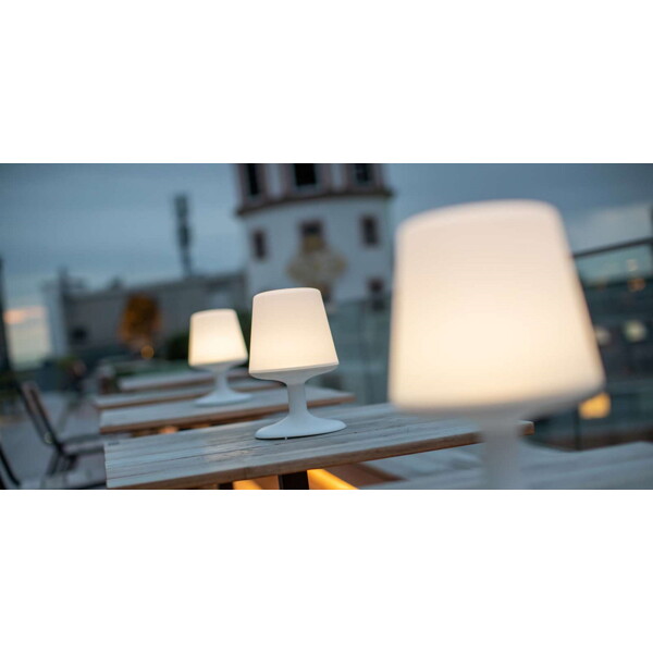 Robust, funktionell och miljövänlig LED-lampa, som du kan ta med dig och ställa där du behöver den. Lampan är tillverkad i 100% återvinningsbar, giftfri thermoplast. Den är dimbar i tre olika styrkor, perfekt som stämningshöjare eller nattlampa i barnens rum.