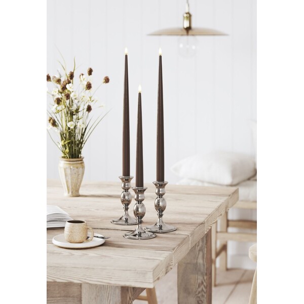 Lägg till en touch av elegans och stil med dessa glänsande LED-kronljus. Den lackerade ytan ger ljusen en exklusiv och sofistikerad look, och den realistiska flammande effekten skapar en mysig och inbjudande atmosfär. Perfekta för att lysa upp middagar, festligheter eller för att skapa en vacker stämning i ditt hem.