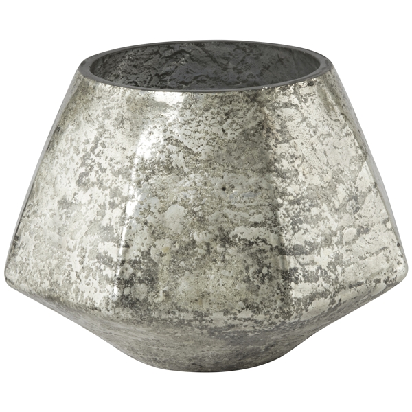 Design: Day HomeVacker ljuslykta i silverplaterat glas.Storlek: Höjd 7 cm. Diameter: 10 cm.Material: Antikt silver och glas
