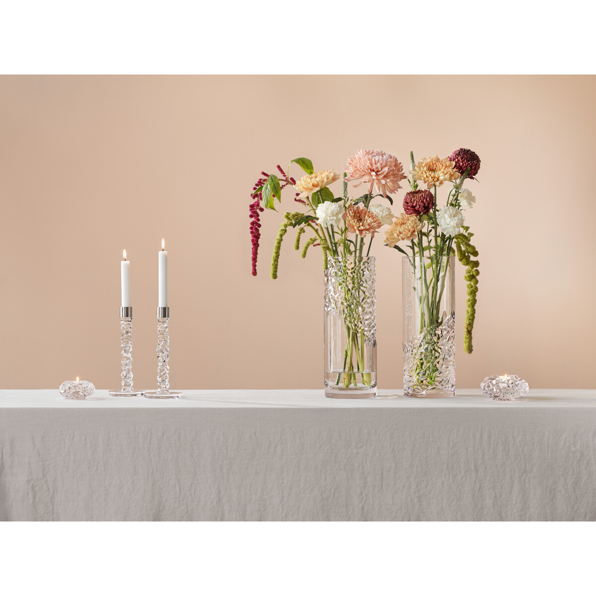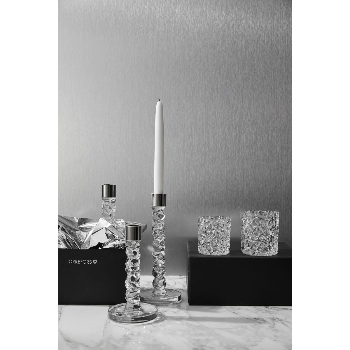 Lena Bergström är en av Sveriges mest prisbelönta och produktiva formgivare. Bruksglas, servisglas, belysning, textilier, smycken och offentliga utsmyckningar som Orrefors Crystal Bar. Inget verkar omöjligt för Lena.Med en smittande personlighet och kärlek till material och hantverk tar hon sig an varje uppdrag med samma energi. Lenas formspråk är som henne själv - mjukt, hårt, kvinnligt, manligt, modernt och vackert på en och samma gång. Hon utgår alltid från materialets egenskaper och försöker ständigt hitta nya uttryck tillsammans med Orrefors skickliga hantverkare. Lena själv värderar en serieproducerad ljuslykta lika högt som de mer arbetade hantverksskickliga produkterna. Därför är hon lika populär hos bruksglasköpare som hos trendmedvetna inredare.