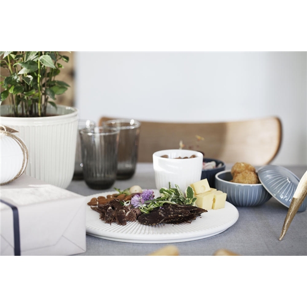 Denna bonbonjär från Kähler är en del av den klassiska Hammershøi-serien, utformad i samarbete med den danska designern Hans-Christian Bauer. Serien präglas av sina fina eleganta spår, vilket ger keramiken en unik look. Använd den vackra bonbonjären som en dekorativ skål på bordet eller som burk i badrummet eller i sovrummet.