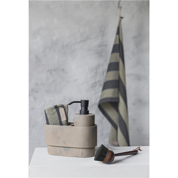 Diskbänksförvaring från Mette Ditmers köksserie Attitude. Serien är tillverkad av stenpulver med en handgjord marmoreffekt som gör varje produkt unik. Diskbänksförvaringen är praktisk förvaring inte bara i köket för diskmedel, disktrasa, diskborste och disksvamp utan också på kontoret för kontorsredskap och i badrummet för förvaring av hygienartiklar eller dylikt. Serien finns i flera färger och delar - matcha för en fin och enhetlig look. Rengörs med ett milt diskmedel, inte lämplig för maskindisk.