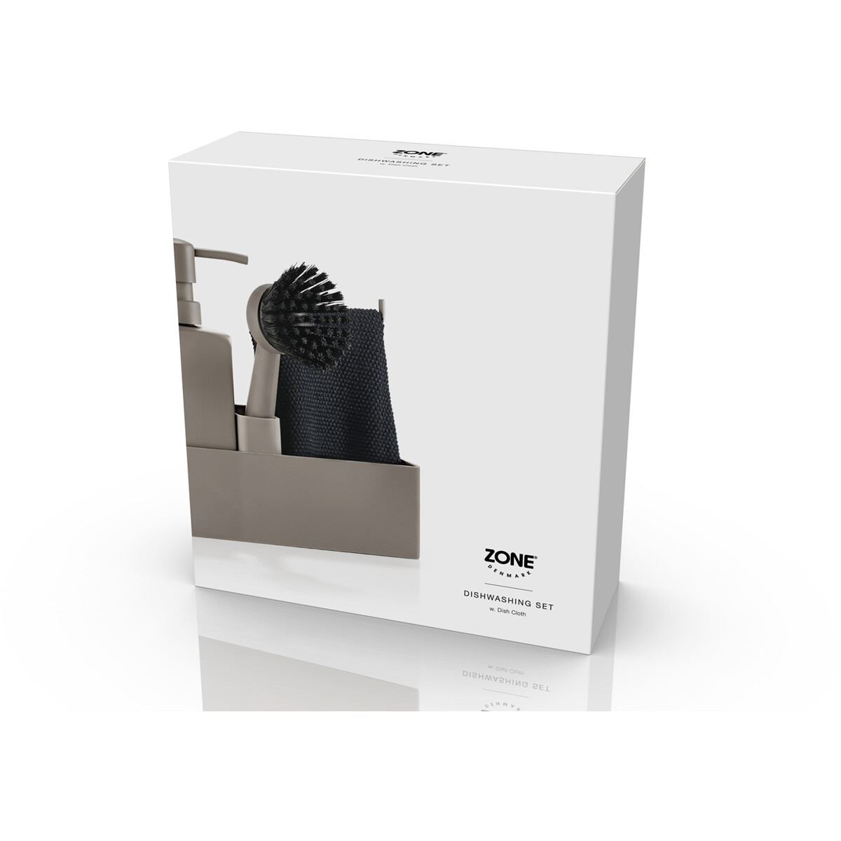 Zones populära allt i ett-diskset med disktrasa. Tvålpumpen är gjord av robust keramik, och behållaren är i repfri silikon som är lätt att rengöra. Borsten kan stå själv och borsthuvudet kan bytas ut så att du alltid har en fräsch borste.