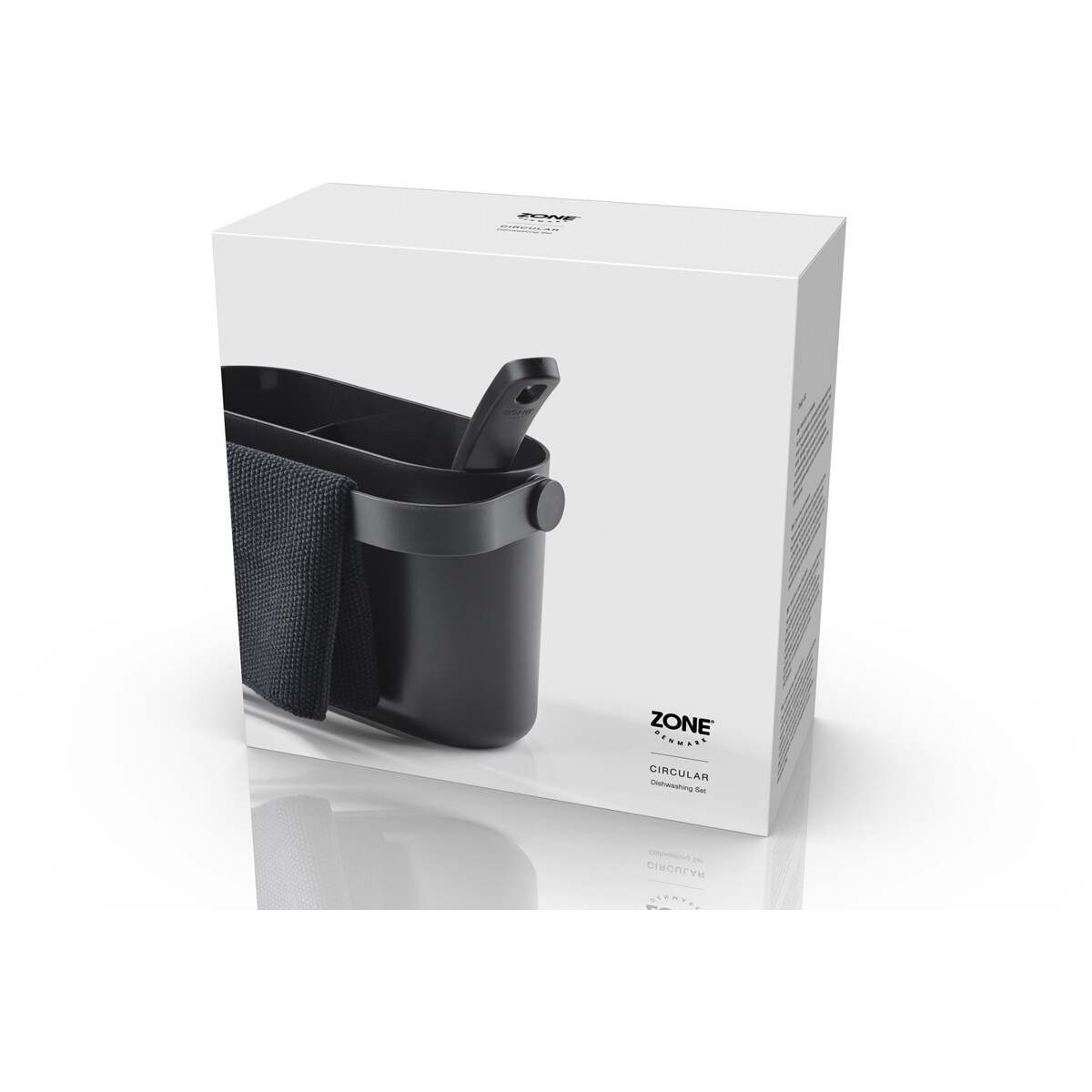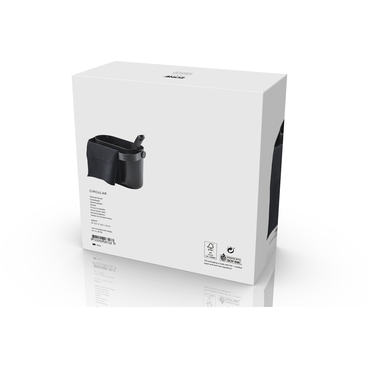 Disksetet innehåller en borste, disktrasa och caddy. Handtaget kan placeras i tre positioner – upprätt som bärhandtag, framåtfällt som torkplats för disktrasasn eller bakåtfälld för att spara plats.