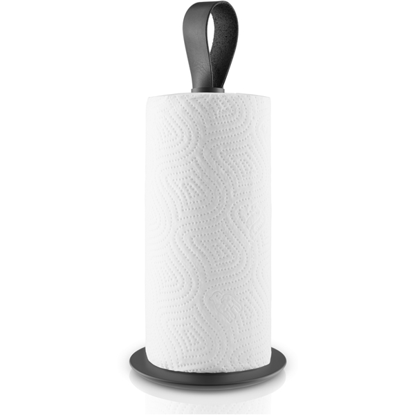 Svart köksrullehållare från Eva Solo i rostfritt stål med en snygg rem i kärnläder som gör att rullen smidigt kan tas med från rum till rum. Som hos alla Eva Solos designföremål är detaljerna väl genomtänkta. Hållarens botten har till exempel extra tyngd och är belagd med gummi så att den står stadigt när man behöver riva av en bit papper snabbt. Gummibeläggningen gör samtidigt att du slipper repor på matbordet eller köksbänken. Både en praktisk och snygg köksrullehållare!