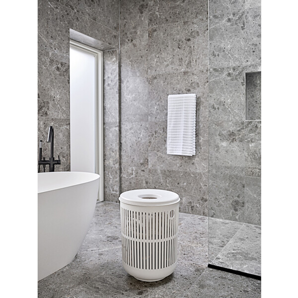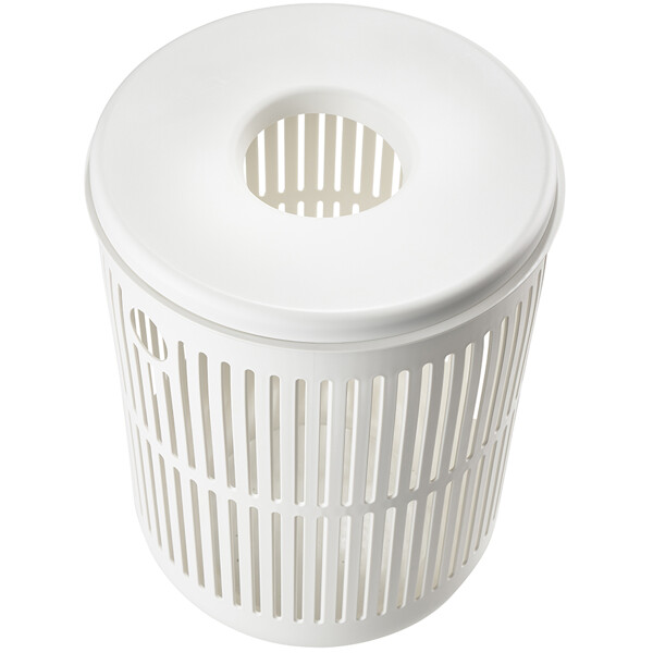 Locket kan enkelt lyftas av, men det behöver du inte alltid göra. Strumpor och andra små saker kan enkelt kastas ner i korgen via hålet i mitten.