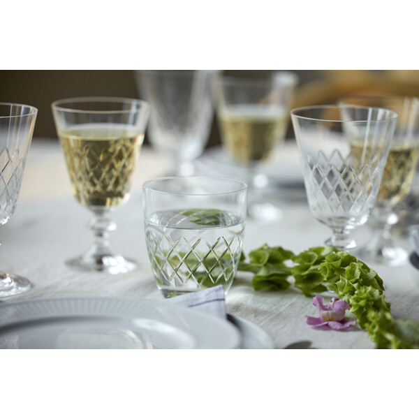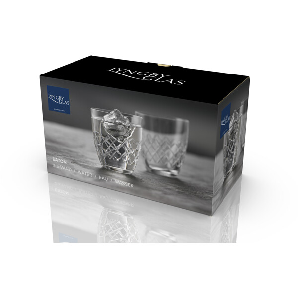 Eaton vattenglas, 30 cl, tolkar om det klassiska diamantformade mönstret från det ikoniska Eaton-glaset, som Lyngby Glas skapade på 1960-talet. Designets tidlösa estetik förenar klassisk charm med modern stil och tillför en helt unik stämning vid bordet. Tillverkat i kristallglas erbjuder Eaton enastående klarhet och hållbarhet, vilket gör glaset till ett nöje att använda – oavsett om det är för en mysig vardagsmiddag eller en festlig kväll med vänner. Eaton tillverkas i Europa med stor precision genom en avancerad produktionsprocess som inkluderar maskinslipning och polering. Resultatet är hög klarhet och en exklusiv finish som framhäver glasets enkla elegans.