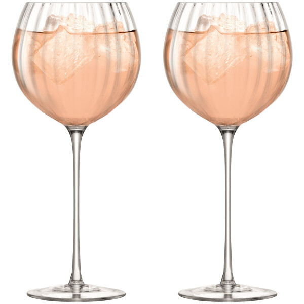 Set med två munblåsta fint räfflade dricksglas. Passar för flera typer av drycker, gärna gindrinkar.