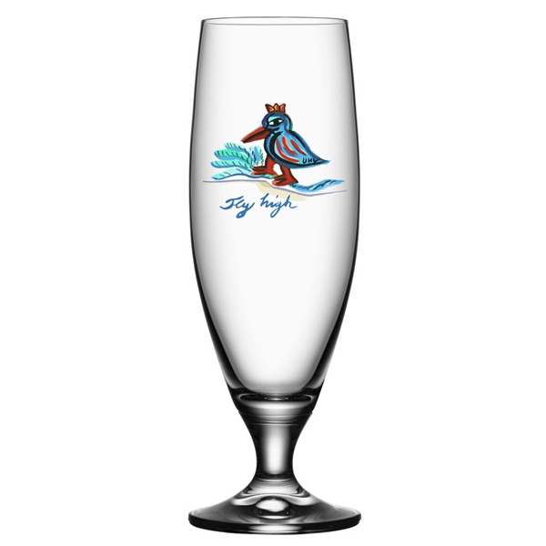 Design: Ulrica Hydman-Vallien Ulrica Hydman-Valliens är främst känd för sina glas- och akrylverk men hennes design har även prytt keramik, mobiltelefoner och flygplansstjärtar. Hon är en av Sveriges mest kända glaskonstnärer som med sitt kraftfulla bildspråk förmedlar både energi och humor. Ulrica fick sitt genombrott med Caramba och Open Minds. Läckert ölglas i Ulrika Hydman-Valliens populära serie med vackra illustrationer. Serien Friendship består av kärleksfulla glas med färgglada unika mönster, här med mönstret "Fly High". Storlek: Höjd: 21,5 cm, Volym 50cl Material: Glas